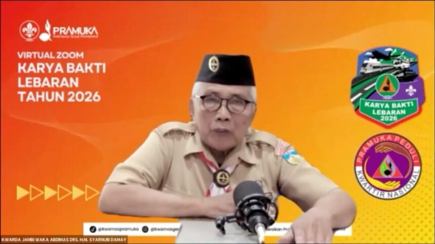 PRAMUKANEWS.ID — Wakil Ketua Kwartir Daerah Gerakan Pramuka Jambi Bidang Pengabdian Masyarakat Kak H.M. Syarnubi Damay hadir secara daring dalam Pencanangan Karya Bakti Lebaran 2026.