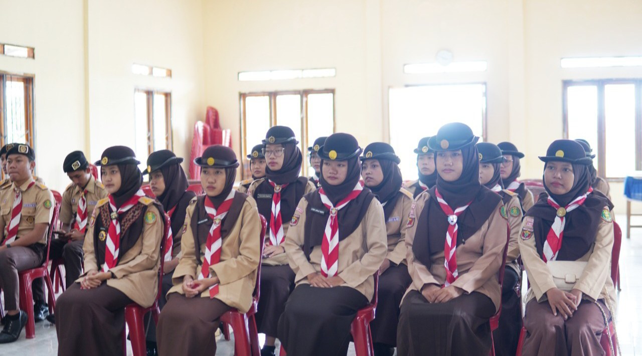 Para peserta diserahkan oleh Pembina UKM Pramuka Kak Dr. Rita Wati dan diterima secara resmi oleh Kepala Desa Margodadi, Kak Noven, bersama jajaran perangkat desa pada Sabtu, 7 Maret 2026.