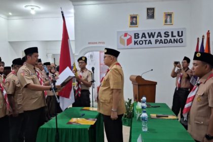 Pengurus Saka Adhyasta Pemilu Padang Resmi Dilantik, Bawaslu Dorong Pramuka Jadi Penjaga Demokrasi